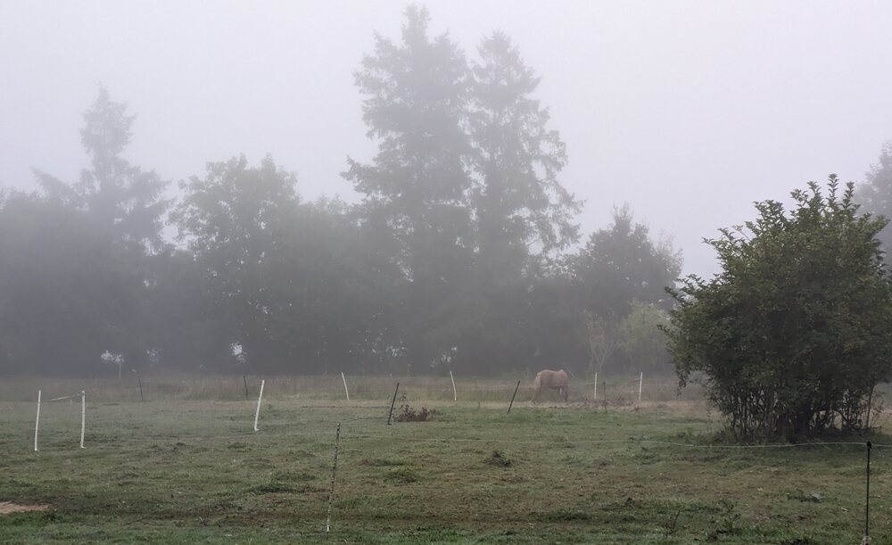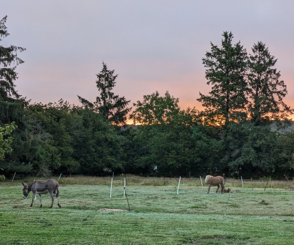 l'herbe est verte , c'est la Bretagne , il pleut sans arrêt, les équidés sont heureux , ça batifole dans le pré :)