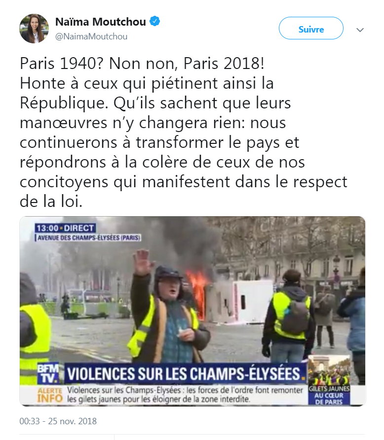 Probablement que non, car eux manifestent dans le calme, « sans incident ». En « respectant les institutions »