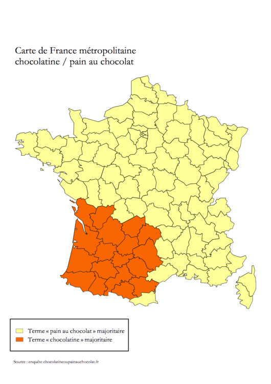 On parle de chocolatine uniquement dans le sud-ouest. Quand j'habitais à Limoges, c'était la limite et on trouvait les deux, pain au chocolat ou chocolatine. Ici à Pau, pas de discussion : c'est chocolatine, et c'est tout.