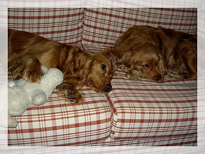 Voici un fou de la balle et un bouffeur de canapé...le deuxième, je l'ai à l'oeil, fait rien que des bêtises...