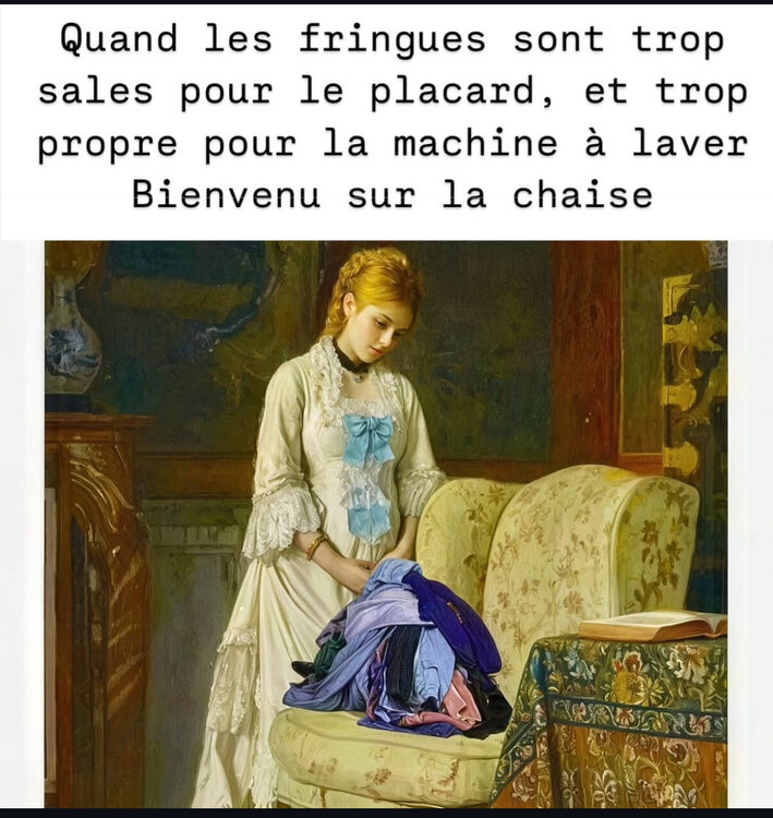 Vous savez les fringues pas assez sale pour aller au lavage mais que tu vas pas reporter non plus le lendemain. On sait jamais quoi en faire de ceux là